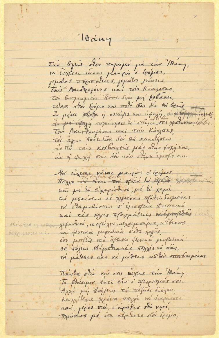 «Ιθάκη» - Χειρόγραφο του ποιητή © Αρχείο Καβάφη/Ίδρυμα Ωνάση